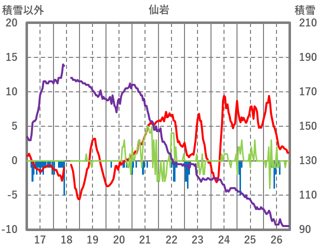 | 日 | 時 | 気温 | 降水 | 風向/風速 | 日照 | 積雪 | 降雪 |
