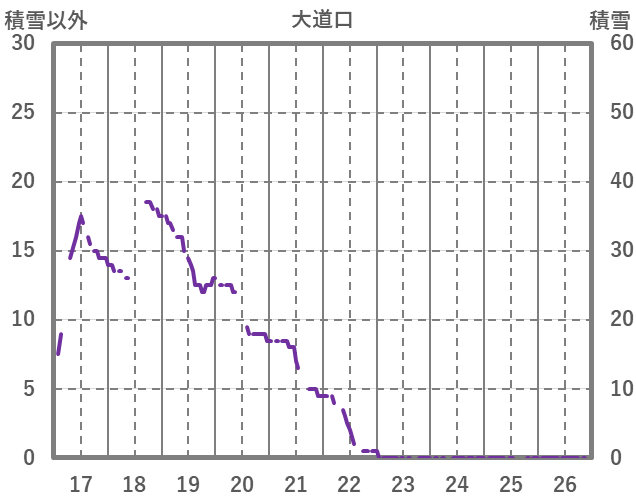 | 日 | 時 | 気温 | 降水 | 風向/風速 | 日照 | 積雪 | 降雪 |