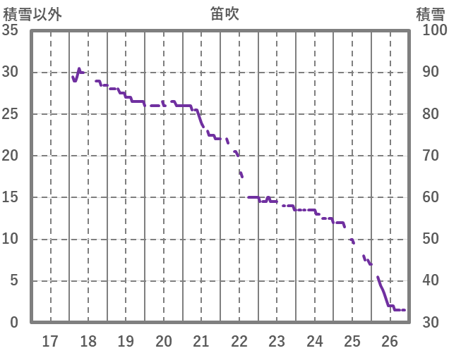| 日 | 時 | 気温 | 降水 | 風向/風速 | 日照 | 積雪 | 降雪 |