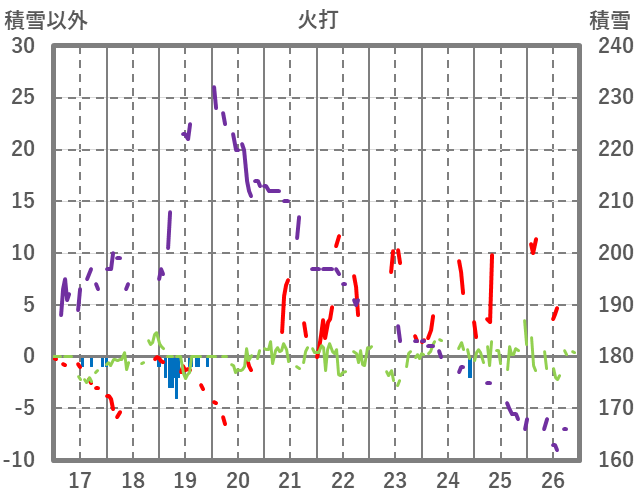 | 日 | 時 | 気温 | 降水 | 風向/風速 | 日照 | 積雪 | 降雪 |