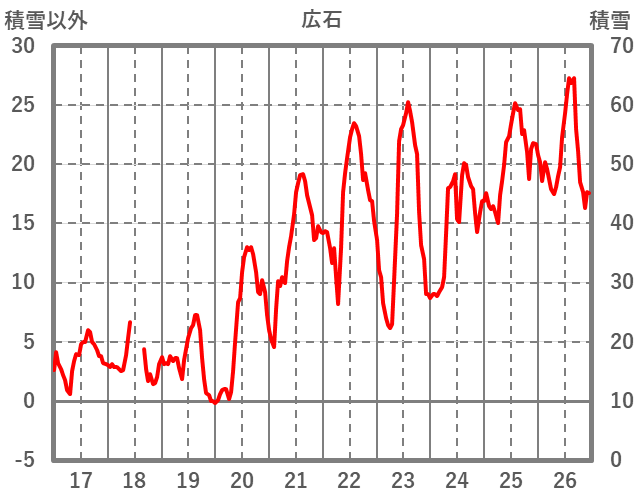 | 日 | 時 | 気温 | 降水 | 風向/風速 | 日照 | 積雪 | 降雪 |