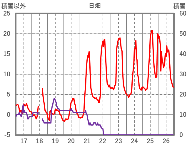 | 日 | 時 | 気温 | 降水 | 風向/風速 | 日照 | 積雪 | 降雪 |