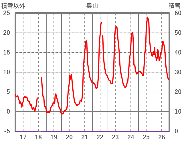 | 日 | 時 | 気温 | 降水 | 風向/風速 | 日照 | 積雪 | 降雪 |