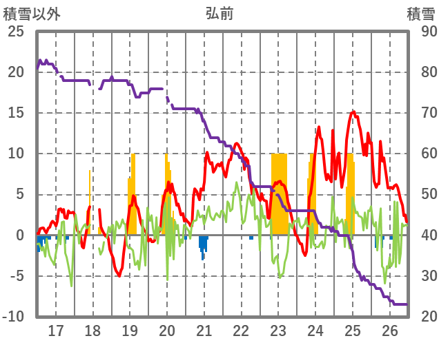 | 日 | 時 | 気温 | 降水 | 風向/風速 | 日照 | 積雪 | 降雪 |
