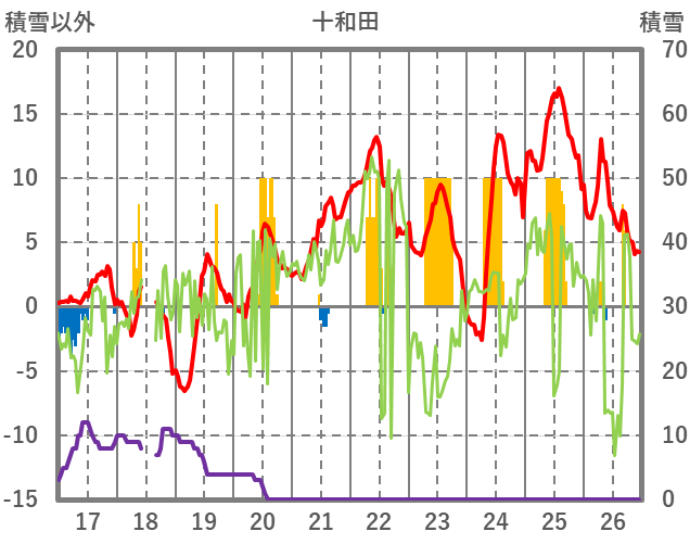 | 日 | 時 | 気温 | 降水 | 風向/風速 | 日照 | 積雪 | 降雪 |