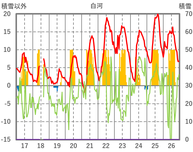 | 日 | 時 | 気温 | 降水 | 風向/風速 | 日照 | 積雪 | 降雪 |