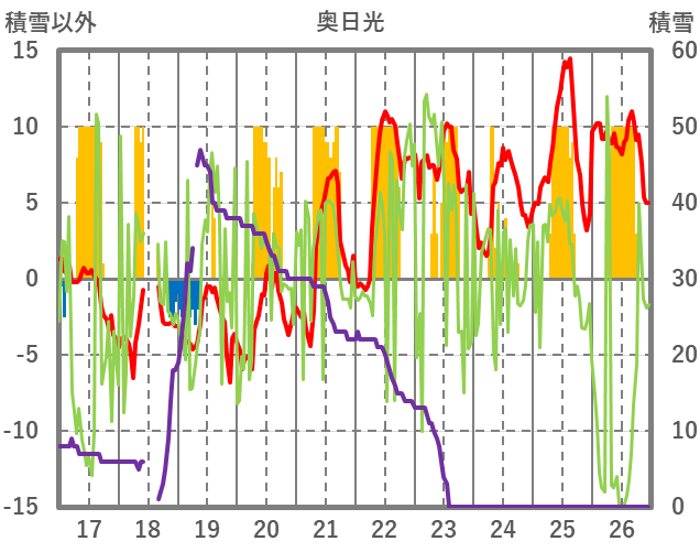 | 日 | 時 | 気温 | 降水 | 風向/風速 | 日照 | 積雪 | 降雪 |