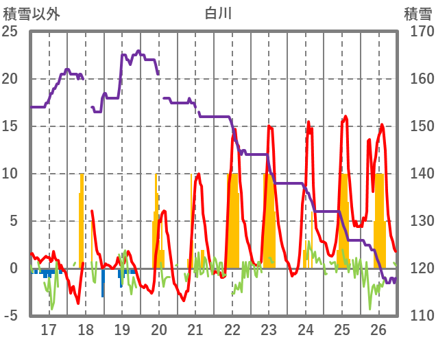 | 日 | 時 | 気温 | 降水 | 風向/風速 | 日照 | 積雪 | 降雪 |