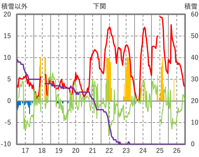 | 日 | 時 | 気温 | 降水 | 風向/風速 | 日照 | 積雪 | 降雪 |