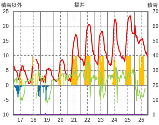 | 日 | 時 | 気温 | 降水 | 風向/風速 | 日照 | 積雪 | 降雪 |