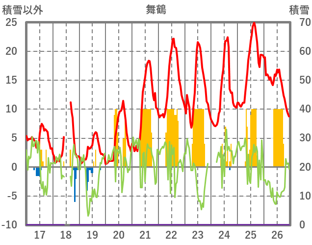 | 日 | 時 | 気温 | 降水 | 風向/風速 | 日照 | 積雪 | 降雪 |