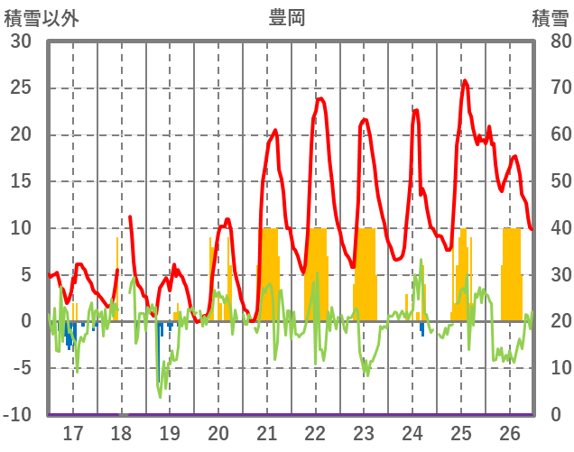 | 日 | 時 | 気温 | 降水 | 風向/風速 | 日照 | 積雪 | 降雪 |