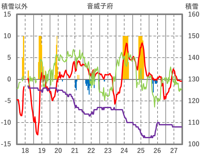 | 日 | 時 | 気温 | 降水 | 風向/風速 | 日照 | 積雪 | 降雪 |