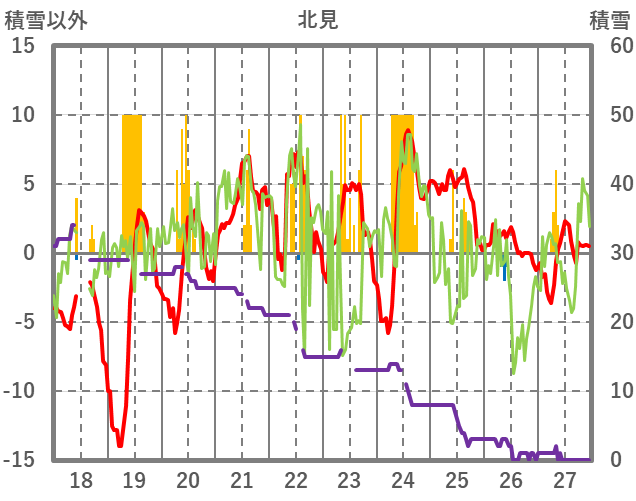 | 日 | 時 | 気温 | 降水 | 風向/風速 | 日照 | 積雪 | 降雪 |