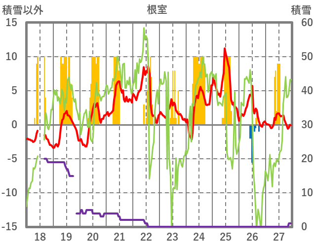 | 日 | 時 | 気温 | 降水 | 風向/風速 | 日照 | 積雪 | 降雪 |