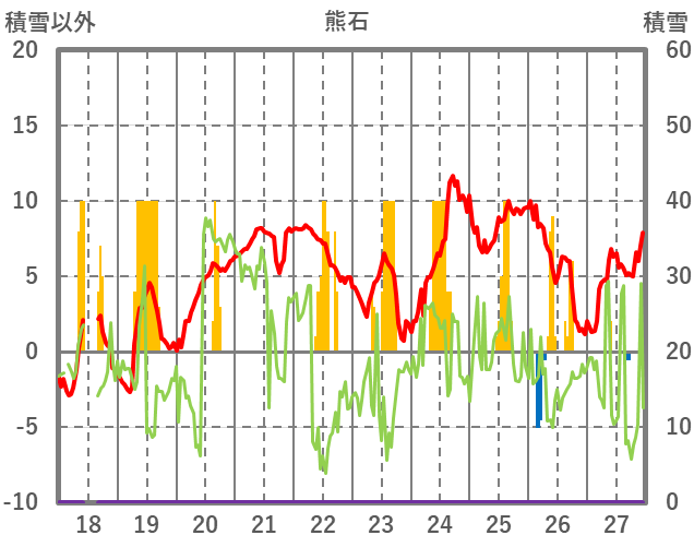 | 日 | 時 | 気温 | 降水 | 風向/風速 | 日照 | 積雪 | 降雪 |