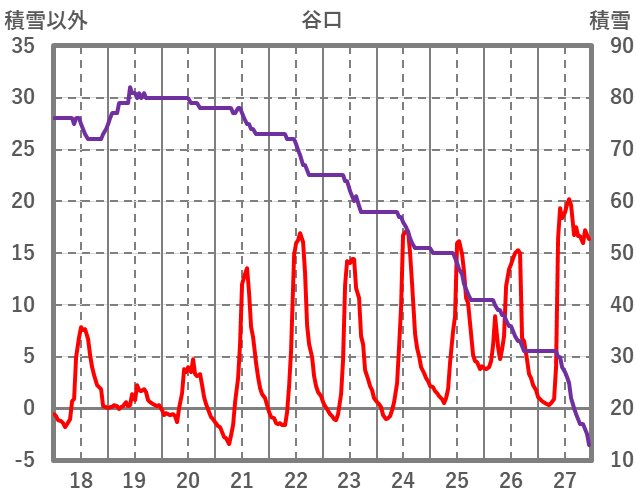 | 日 | 時 | 気温 | 降水 | 風向/風速 | 日照 | 積雪 | 降雪 |