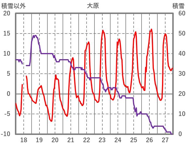 | 日 | 時 | 気温 | 降水 | 風向/風速 | 日照 | 積雪 | 降雪 |