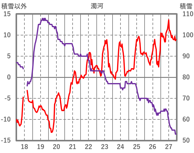 | 日 | 時 | 気温 | 降水 | 風向/風速 | 日照 | 積雪 | 降雪 |