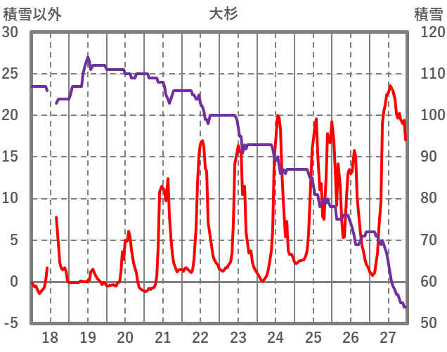 | 日 | 時 | 気温 | 降水 | 風向/風速 | 日照 | 積雪 | 降雪 |