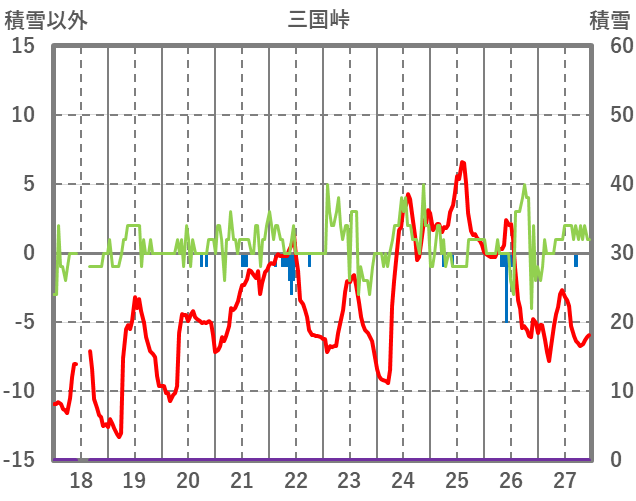 | 日 | 時 | 気温 | 降水 | 風向/風速 | 日照 | 積雪 | 降雪 |