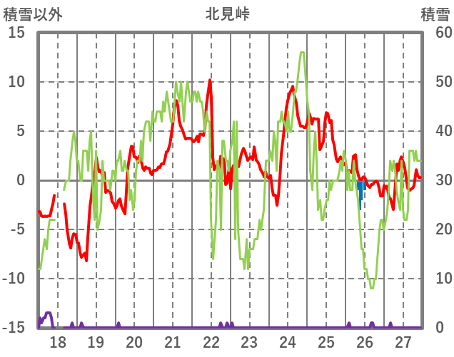 | 日 | 時 | 気温 | 降水 | 風向/風速 | 日照 | 積雪 | 降雪 |
