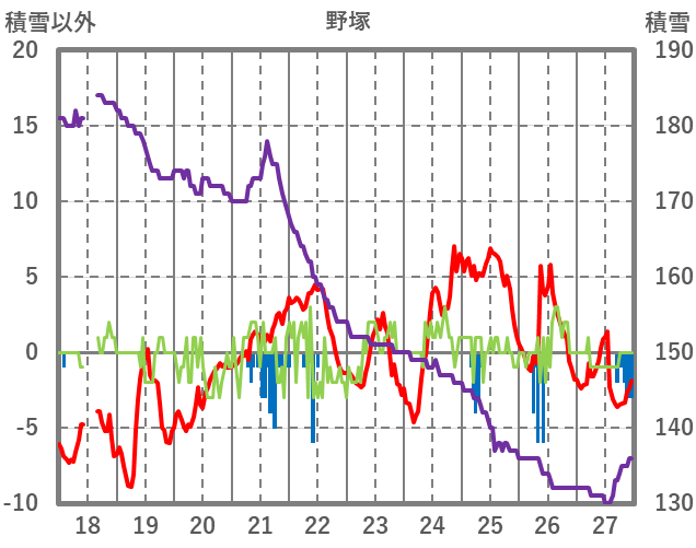 | 日 | 時 | 気温 | 降水 | 風向/風速 | 日照 | 積雪 | 降雪 |