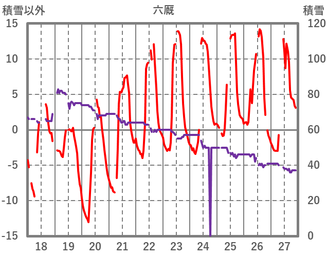 | 日 | 時 | 気温 | 降水 | 風向/風速 | 日照 | 積雪 | 降雪 |