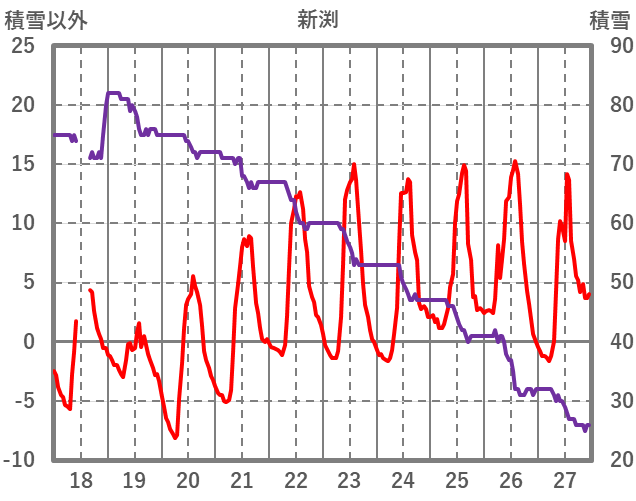 | 日 | 時 | 気温 | 降水 | 風向/風速 | 日照 | 積雪 | 降雪 |