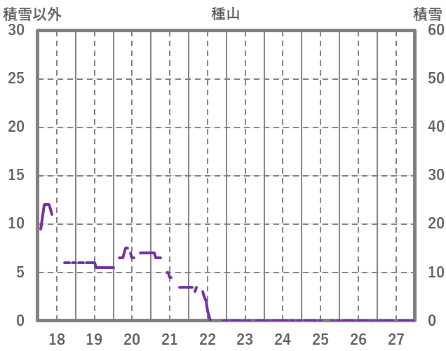 | 日 | 時 | 気温 | 降水 | 風向/風速 | 日照 | 積雪 | 降雪 |