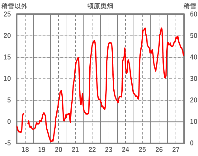 | 日 | 時 | 気温 | 降水 | 風向/風速 | 日照 | 積雪 | 降雪 |