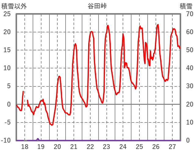 | 日 | 時 | 気温 | 降水 | 風向/風速 | 日照 | 積雪 | 降雪 |