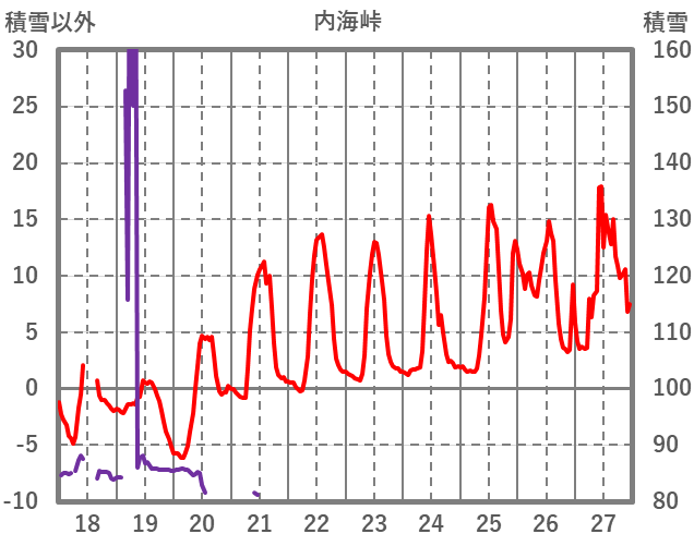 | 日 | 時 | 気温 | 降水 | 風向/風速 | 日照 | 積雪 | 降雪 |