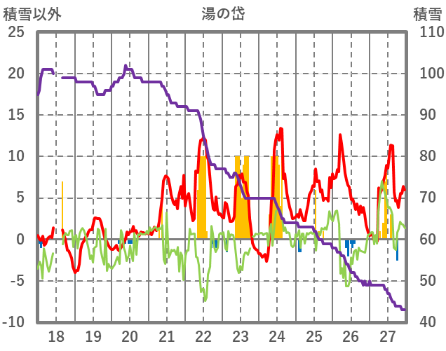 | 日 | 時 | 気温 | 降水 | 風向/風速 | 日照 | 積雪 | 降雪 |