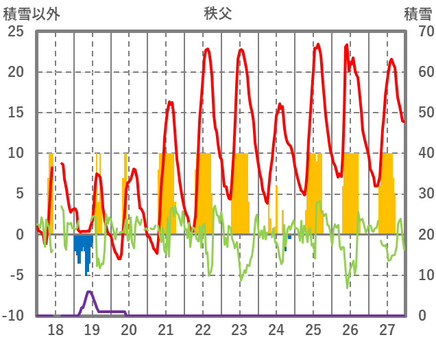 | 日 | 時 | 気温 | 降水 | 風向/風速 | 日照 | 積雪 | 降雪 |