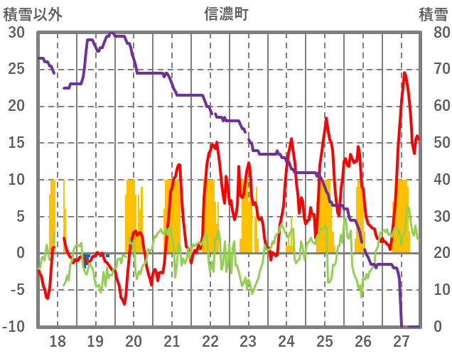 | 日 | 時 | 気温 | 降水 | 風向/風速 | 日照 | 積雪 | 降雪 |