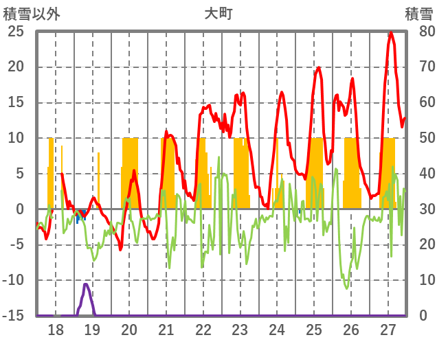 | 日 | 時 | 気温 | 降水 | 風向/風速 | 日照 | 積雪 | 降雪 |