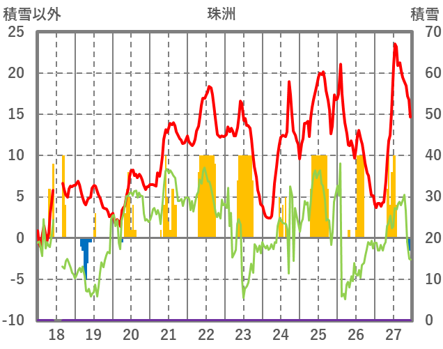| 日 | 時 | 気温 | 降水 | 風向/風速 | 日照 | 積雪 | 降雪 |