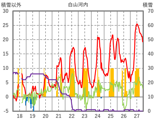 | 日 | 時 | 気温 | 降水 | 風向/風速 | 日照 | 積雪 | 降雪 |