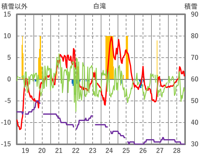| 日 | 時 | 気温 | 降水 | 風向/風速 | 日照 | 積雪 | 降雪 |