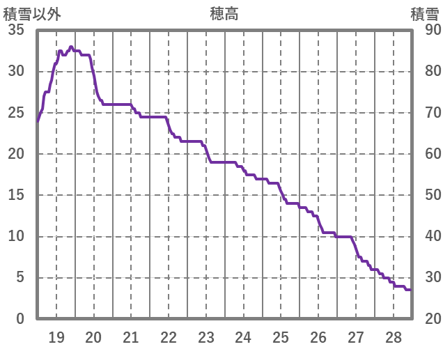 | 日 | 時 | 気温 | 降水 | 風向/風速 | 日照 | 積雪 | 降雪 |