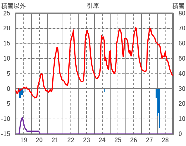 | 日 | 時 | 気温 | 降水 | 風向/風速 | 日照 | 積雪 | 降雪 |