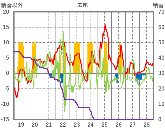 | 日 | 時 | 気温 | 降水 | 風向/風速 | 日照 | 積雪 | 降雪 |