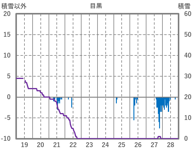| 日 | 時 | 気温 | 降水 | 風向/風速 | 日照 | 積雪 | 降雪 |