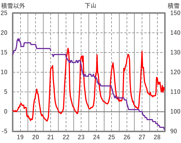 | 日 | 時 | 気温 | 降水 | 風向/風速 | 日照 | 積雪 | 降雪 |