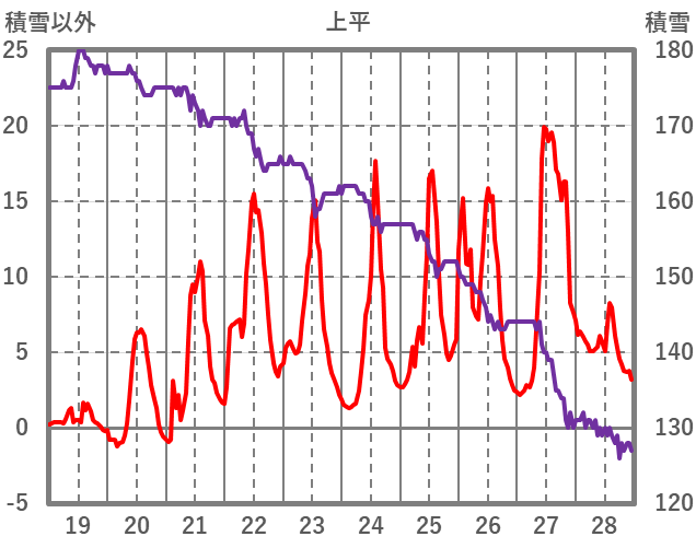 | 日 | 時 | 気温 | 降水 | 風向/風速 | 日照 | 積雪 | 降雪 |