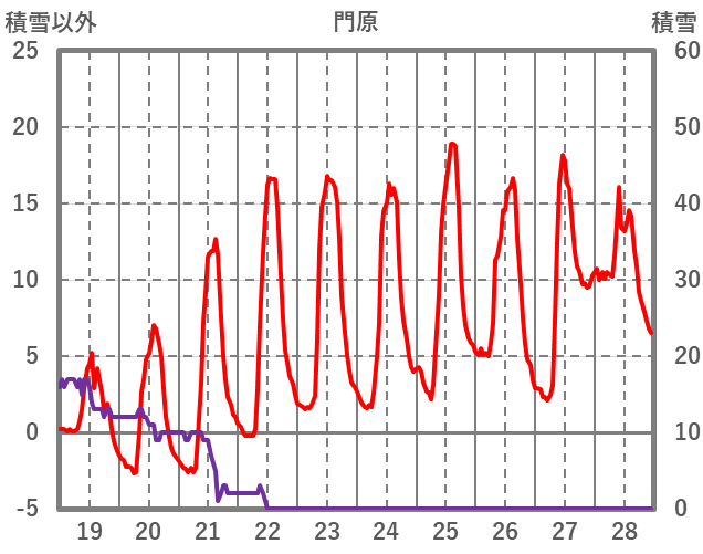 | 日 | 時 | 気温 | 降水 | 風向/風速 | 日照 | 積雪 | 降雪 |