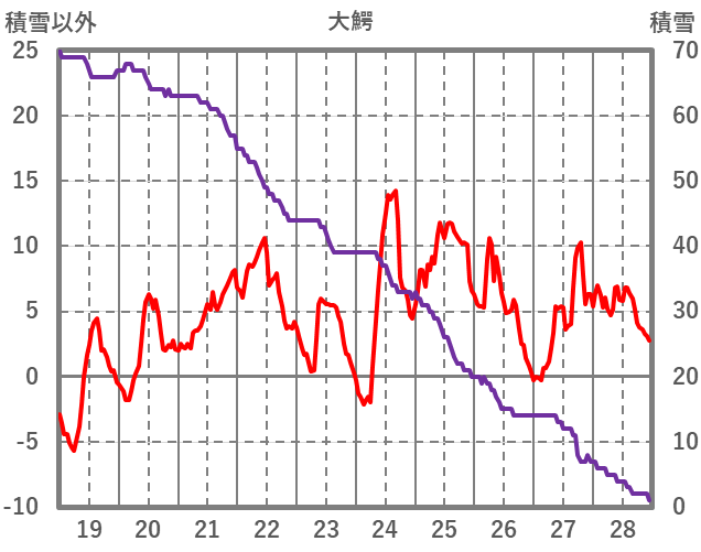 | 日 | 時 | 気温 | 降水 | 風向/風速 | 日照 | 積雪 | 降雪 |
