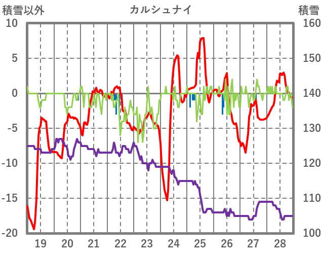 | 日 | 時 | 気温 | 降水 | 風向/風速 | 日照 | 積雪 | 降雪 |