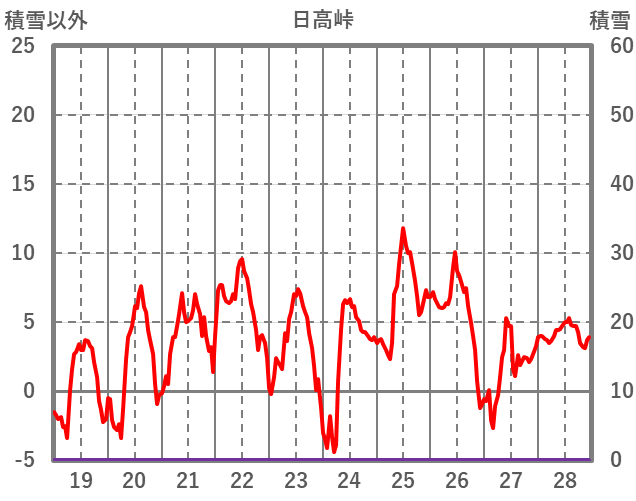 | 日 | 時 | 気温 | 降水 | 風向/風速 | 日照 | 積雪 | 降雪 |